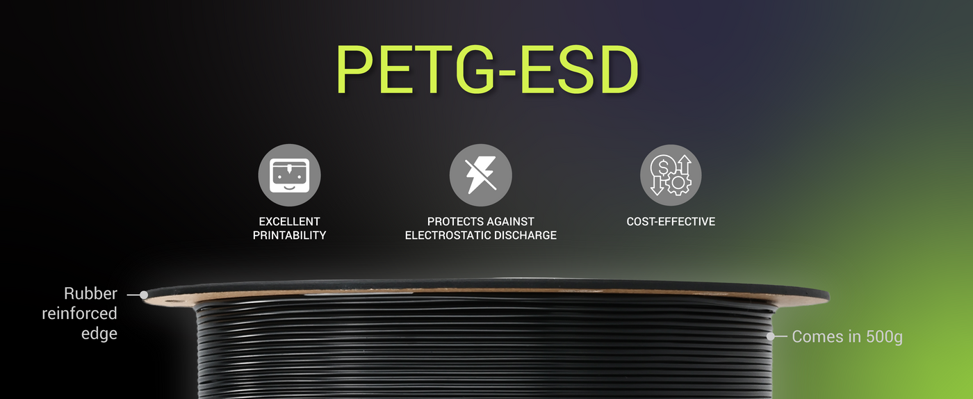 Fiberon™ PETG-ESD is specifically engineered to provide reliable electrostatic discharge (ESD) safety, making it an excellent choice for 3D printing parts used in electronics manufacturing, assembly, and handling. This property helps protect sensitive electronic components from static electricity damage during production and use.