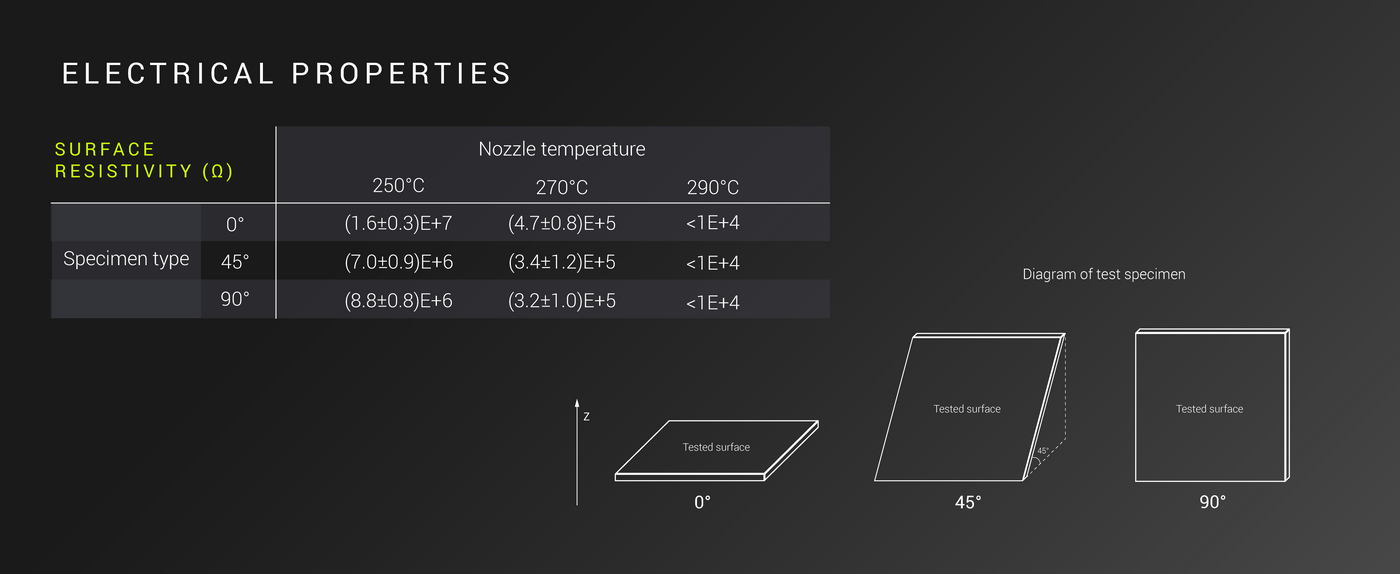 This filament is compounded with carbon nanotubes, which are responsible for its ESD-safe properties. The use of carbon nanotubes ensures consistent conductivity throughout the printed part, maintaining ESD protection even after machining or wear.