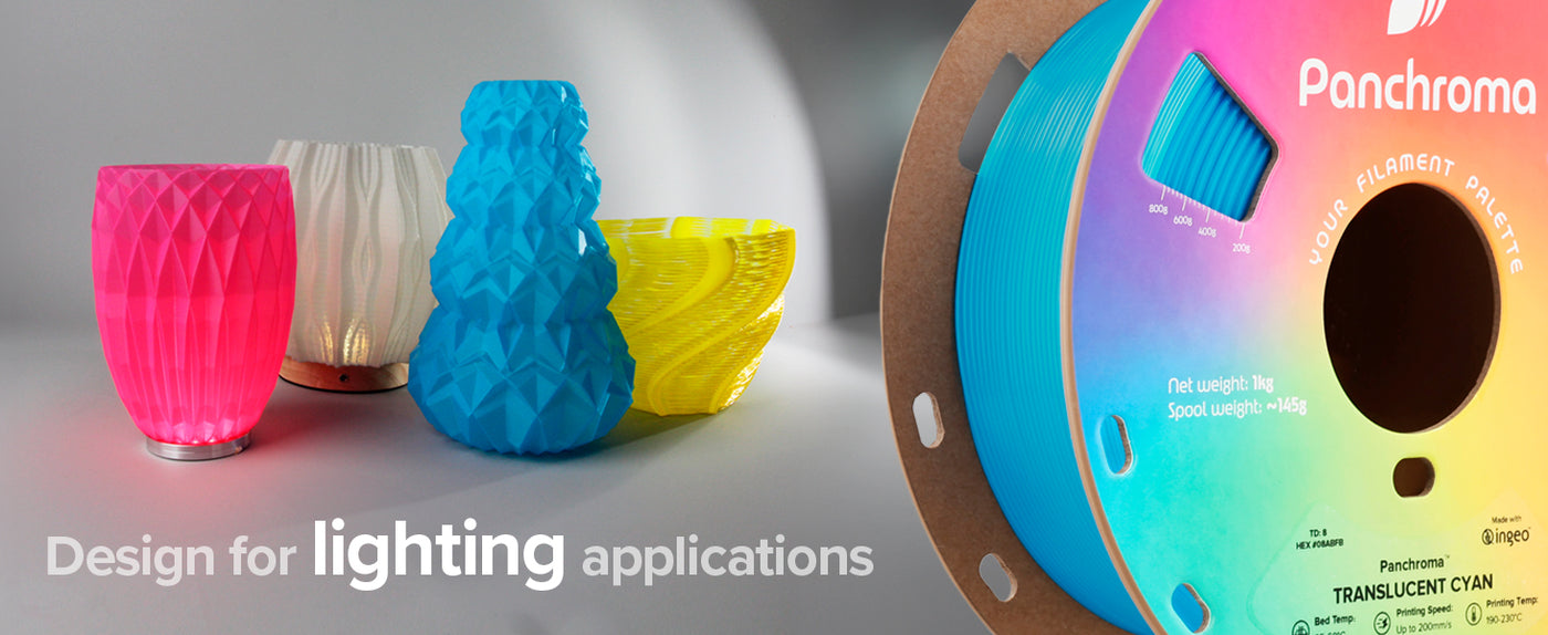 Choose Panchroma™ Translucent PLA when you want to highlight intricate details or create light-diffusing parts, perfect for lampshades, decorative models, and creative designs that benefit from a translucent effect.